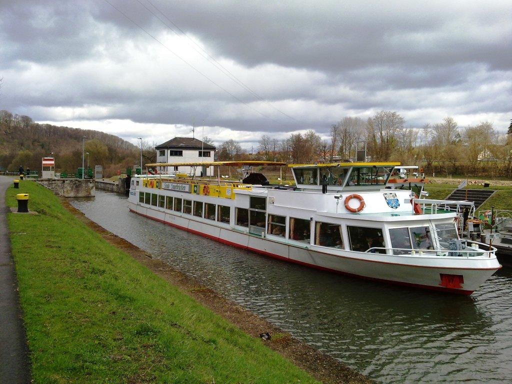 Die Saarbrücker Personenschiffahrt führt Linienfahrten durch nach Frankreich, Wittring und Saargemünd. Fast Täglich Stadtrundfahrten in Saarbrücken und Schleusenfahrten. Fahrten nach Völklingen zum Weltkulturerbe, nach Saarlouis, der heimlichen Hauptstadt des Saarlandes und zur schönen Saarschleife. EVENT Fahrten mit Musik, wie Mondscheinfahrten und Französische Abende. Die Schiffe können auch ganzjährig für Feiern nach Wunsch gemietet werden, wie Hochzeiten mit Trauungen an Bord, Geburtstage, Firmenfeiern usw., mit oder ohne Büffet. Unsere Schiffe passieren kleine Schleusen die mehr als hundert Jahre alt sind. Während man den ruhigen idyllischen Fluss mit seinen vielen seltenen Tieren am Ufer entlang fährt, erholt man sich an Bord bei einem Gläschen Wein, Kaffee und Kuchen, tankt Sonne und lässt die Seele baumeln. Der Schiffsführer erklärt die Flusslandschaft, Sehenswürdigkeiten, Schleusen usw. Alle Fahrten können nach Kundenwunsch das ganze Jahr über perfekt durchgeführt werden. Das Saarland ist bekannt für seine gute Gastronomie und unser nettes Team kümmert sich um das leibliche Wohl.