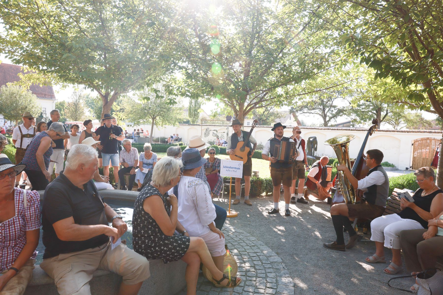 Auf dem Aldersbacher Klosterareal lädt das legendäre Bräustüberl zur Einkehr ein - gute Stimmung, Bier und Brotzeit machen den Charme des urigen Bräustüberl aus. Das Bier im Steinkrug holt man sich an der Schenke selbst ab.
