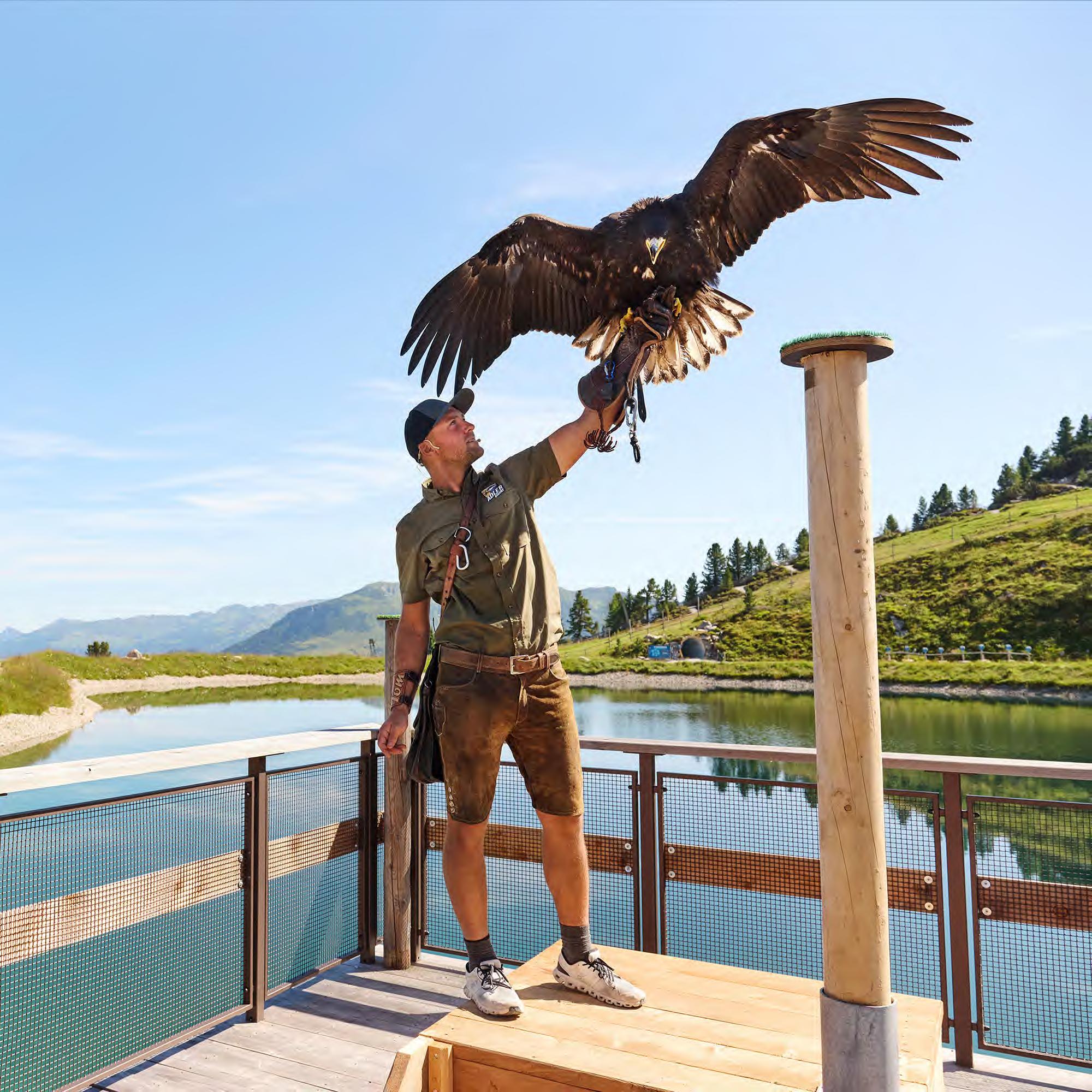 Die AdlerBühne am Ahorn bietet einzigartige Momente. Spektakuläre Flugeinlagen von Adlern, Uhus, Bussarden, Falken und Co. sorgen auf 2.000 Metern für tolle Erlebnisse und verwandeln die Kulisse in eine beeindruckende Naturbühne.