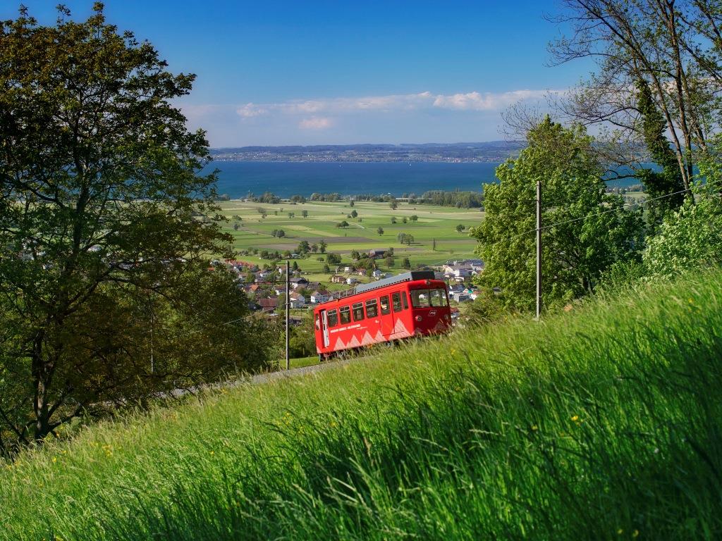 Auf einer gemütlichen Zugsfahrt bringen Sie die Appenzeller Bahnen direkt zu unzähligen Ausflugszielen und Bergbahnen im Appenzellerland. Erleben Sie die malerische Landschaft auf einer Fahrt mit den offenen Aussichtswagen, die im Sommer bei schönem Wetter und ausgewählten Zügen auf den Strecken Rorschach–Heiden und Altstätten–Gais unterwegs sind. Für Gruppen bestens geeignet ist die Erlebnisrundfahrt "emol rondom". Während der Fahrt mit der Zahnradbahn – bei schönem Wetter im offenen Sommerwagen – der Appenzeller Bahnen von Rorschach nach Heiden geniessen Sie die Panorama-Aussicht auf den Bodensee. Im Hotel Heiden werden Sie mit einem 3-Gang-Mittagessen verwöhnt, bevor die Reise in Ihrem Reisecar oder dem Postauto nach Walzenhausen weiterführt. Anschliessend fahren Sie mit der romantischen, kleinen Bergbahn runter nach Rheineck und ab hier mit dem Schiff auf dem Alten Rhein zurück zu Ihrem Ausgangspunkt in Rorschach. Preis inkl. Mittagessen ab 10 Personen: CHF 56.– pro Person. Kontakt und weitere Gruppenangebote: Tel. +41 71 354 50 60 www.appenzellerbahnen.ch