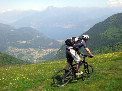 Die Bergbahn in Argégno am Westufer des Comer Sees transportiert Biker samt Bikes nach Pigra. In die kleinen Kabinen passen zwar nur jeweils 3 Biker+Bikes aber man bekommt für nur 3,50 € rund 500 Höhenmeter. Von Pigra aus kann man auf mehreren Wanderwegen wieder direkt zum See abfahren oder man nutzt die eingekauften Höhenmeter für eine ausgedehnte Tour, z.B. in Richtung Mt. di Tremezzo und von dort auf sehr schönen Trails wieder zurück zum Comer See nach Tremezzo, Griánte oder Menággio.